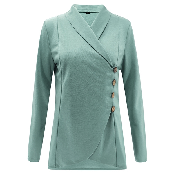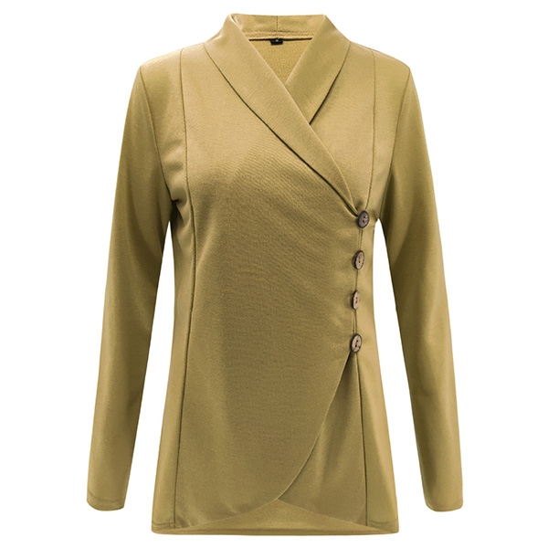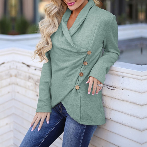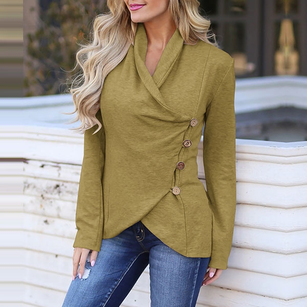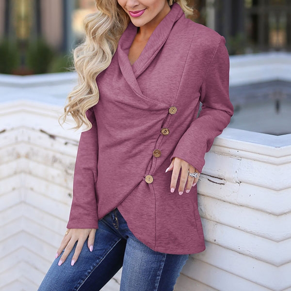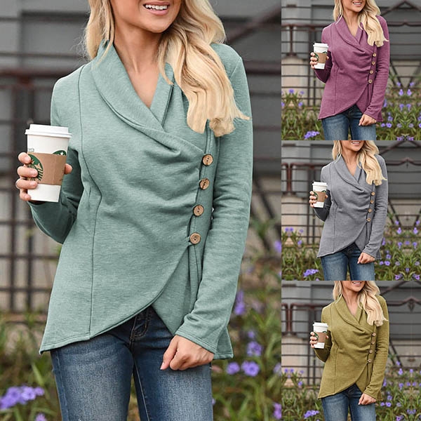 We think it owes to the side button and irregular hem design. So if you are attracted,