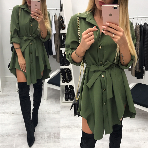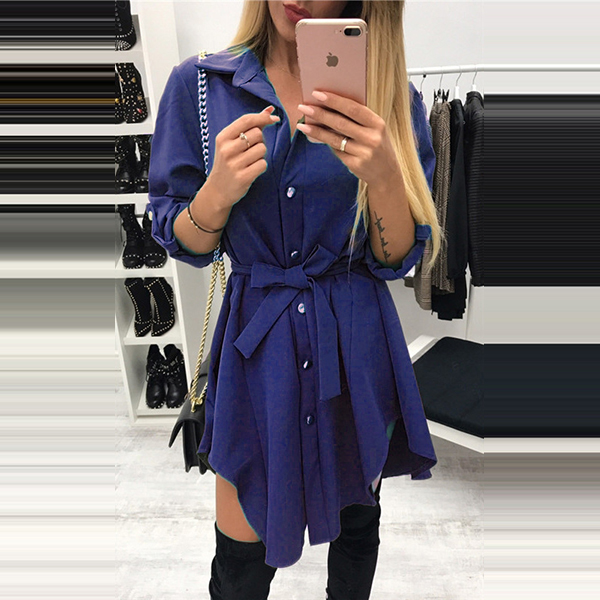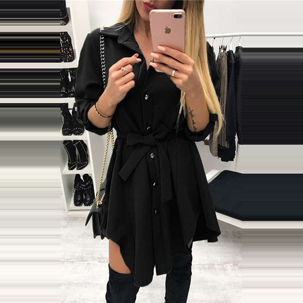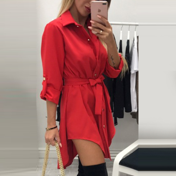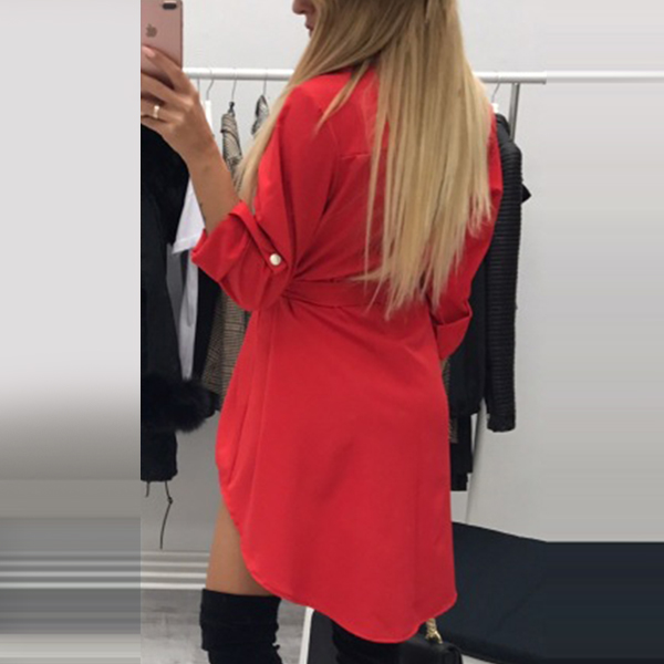 a problem if you have this shirt dress in your team. It features a solid color,long sleeve,single-breasted and an irregular