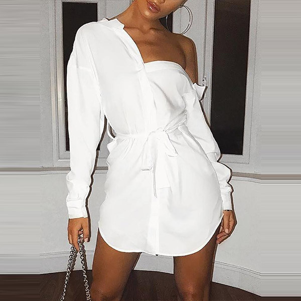 For your busy work days,this cozy yet stylish shirt dress can be a good choice. Solid color style,