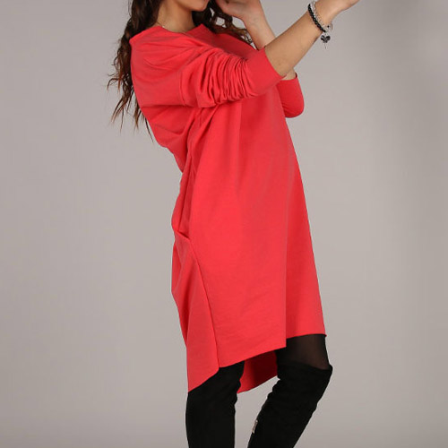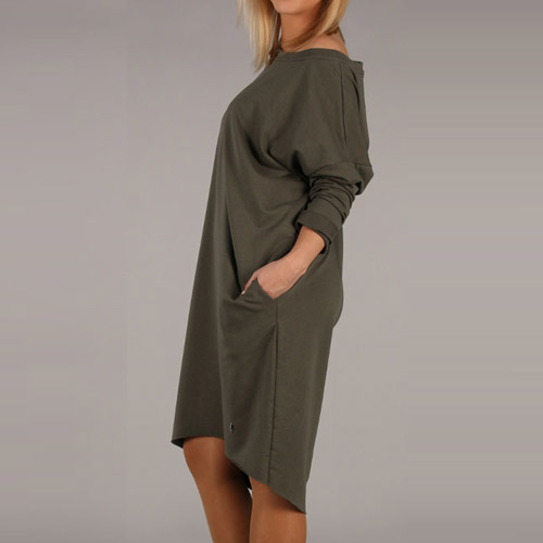 flaunts a slash neck,a loose silhouette and a mid length,can give you an all-day comfort.
