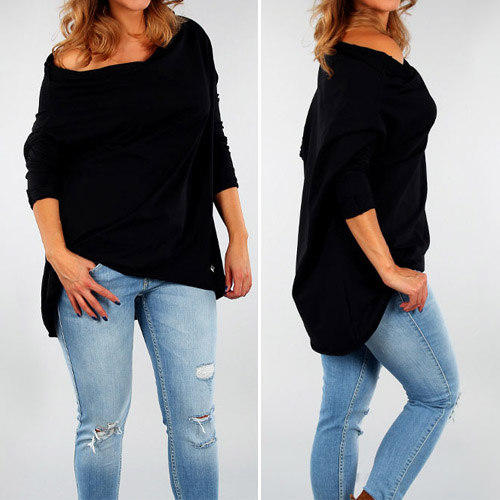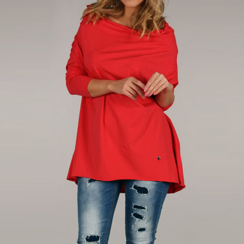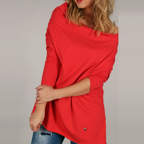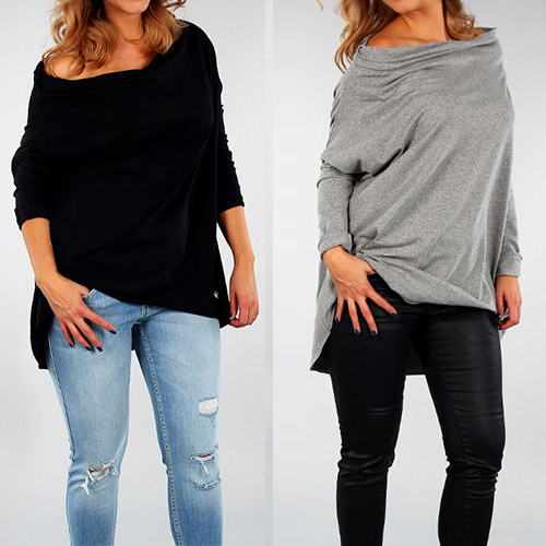 slash neck and loose silhouette design. Its slash neck gives you the chance to show a little