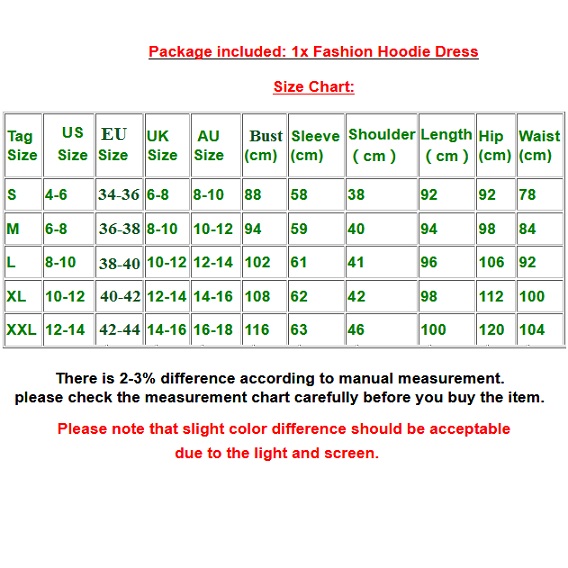 XL : Bust : 108cm(42.52"); Waist : 100cm(39.37"); Hips : 112cm(44.09"); Shoulder : 42cm(16.54"); Sleeve : 62cm(24.41"); Length : 98cm(38.58");