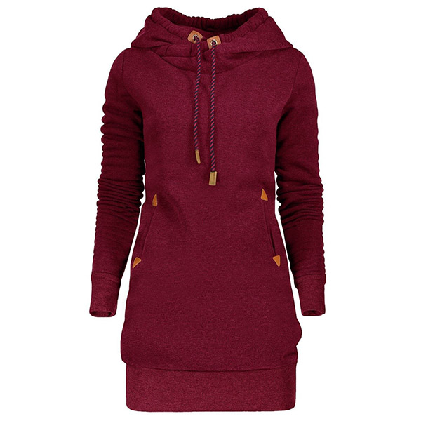This hoodie comes with a solid color tone,finished with long sleeve,hooded and a fit silhouette,which not
