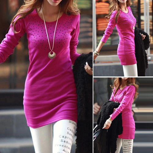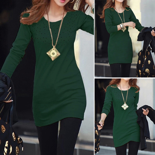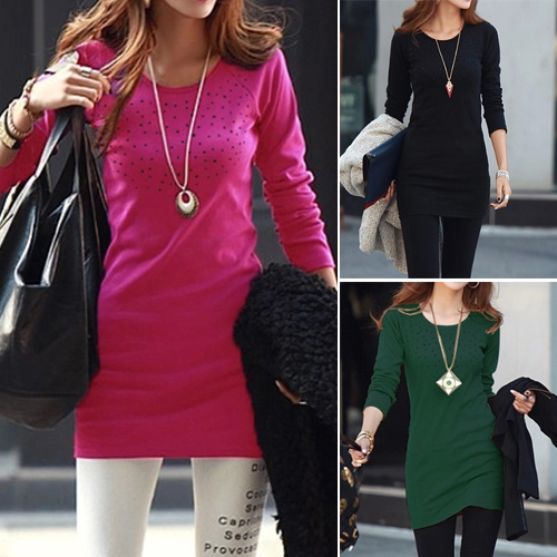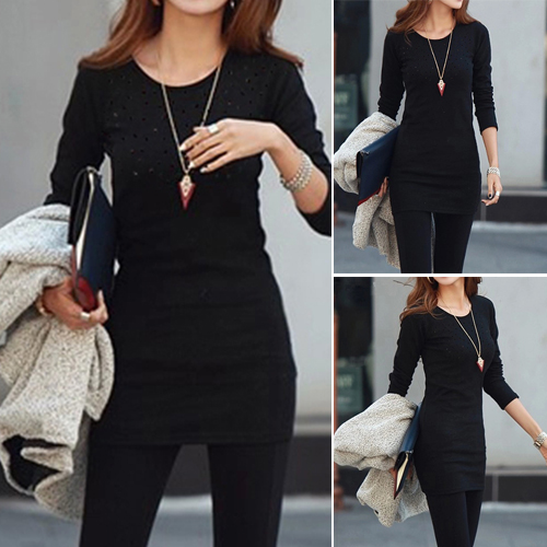 The tops features solid color and long sleeve round neck design, which give us a simple and casual