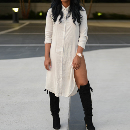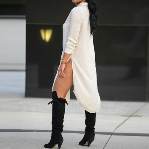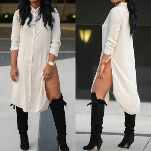 and long sleeves. And its slit hem design makes it look more sexy and sultry. Dress it up with your