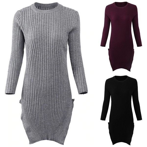 finished with long sleeve,round neck and slit hem design,this dress can keep you warm while