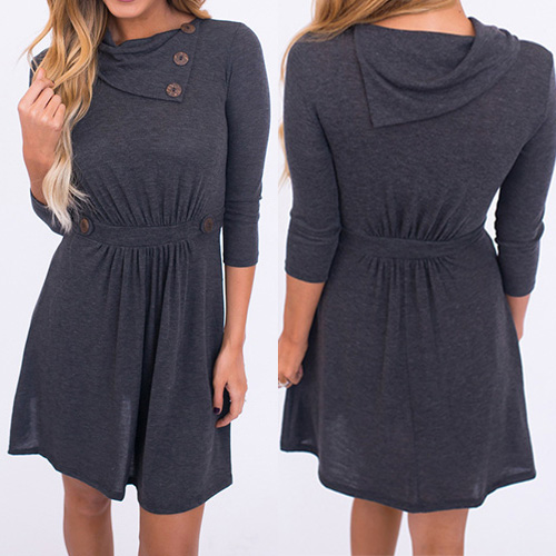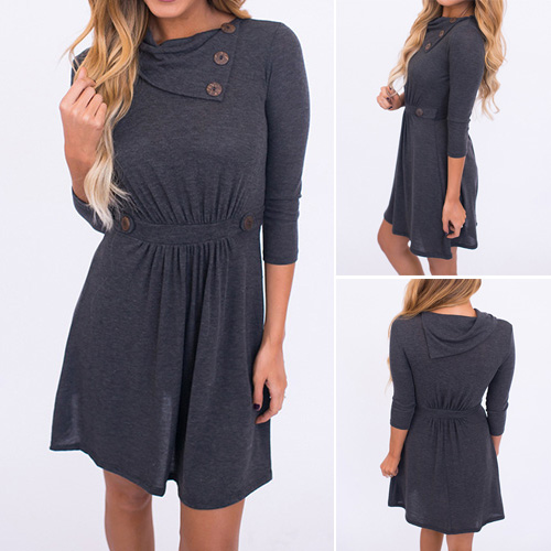 Update your closet with this dress. Solid color style,with long sleeve and square collar design,