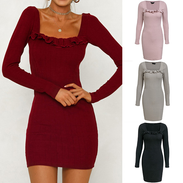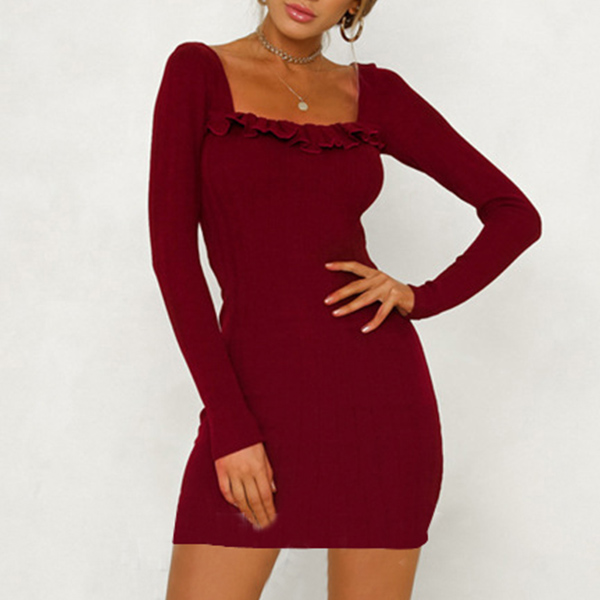 finished with long sleeve,square collar and a tight silhouette,this dress can demonstrate your sexy and