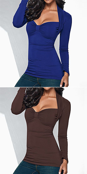 this one is a fine example. Solid color style,designed with long sleeve,square neckline and a sleek silhouette,