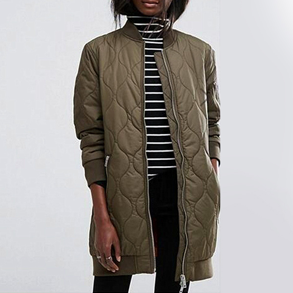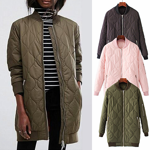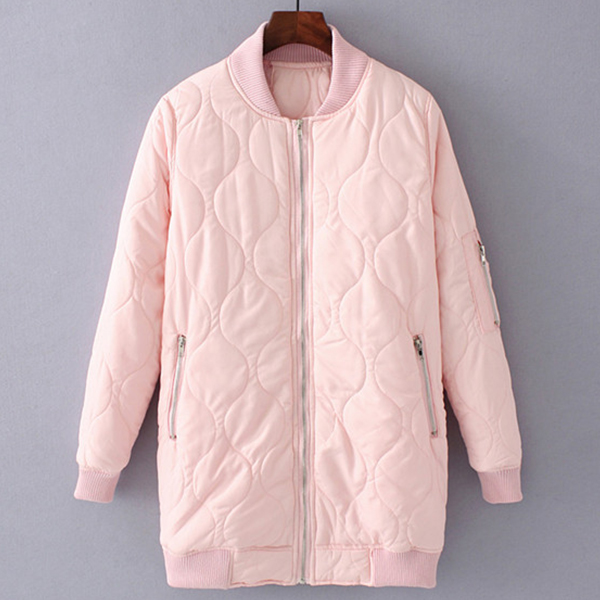 Feel cold? You can just slip into this padded coat. It features a solid color,finished with long sleeve,stand collar and
