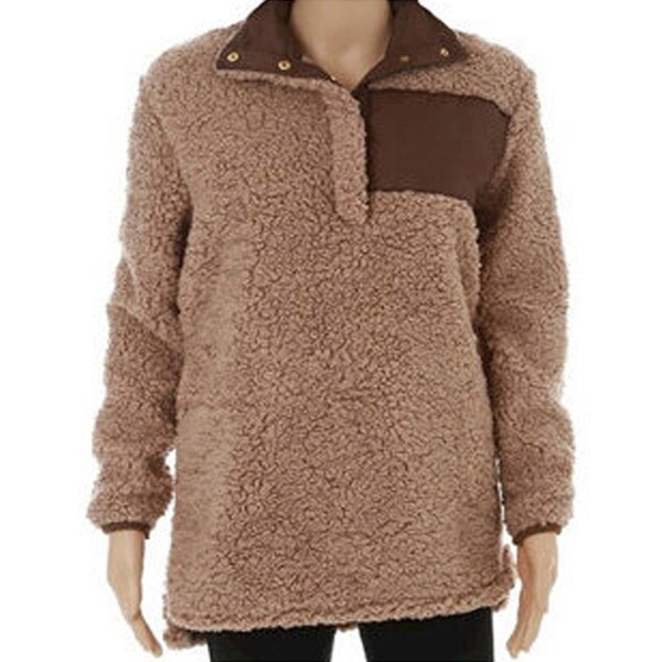 Fashion Solid Color Long Sleeve Stand Collar Plush Sweatshirt