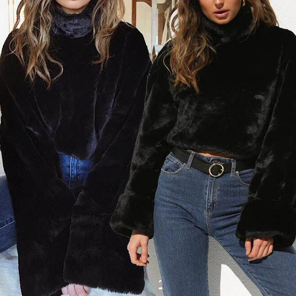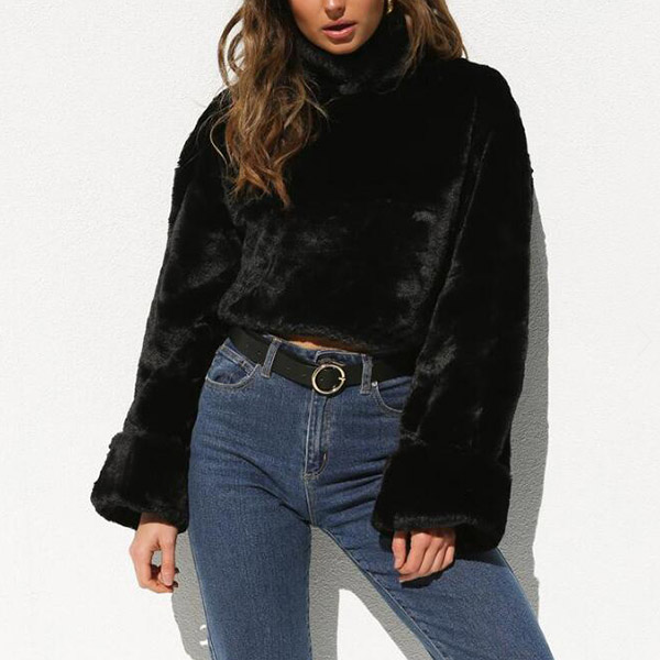 Keep warmth and style with this plush top! Boasts a classic yet stylish black tone,with long sleeve