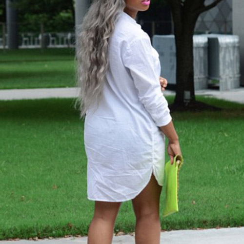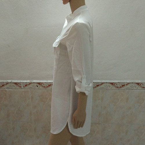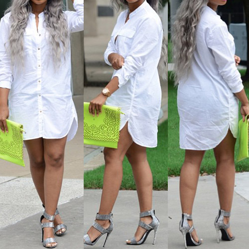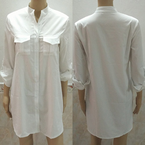 this shirt dress, featuring a stand collar and long sleeves. Rock this for class with a denim
