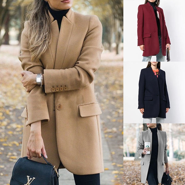Instantly you will become more charming and stylish in this woolen coat. Solid color style,