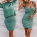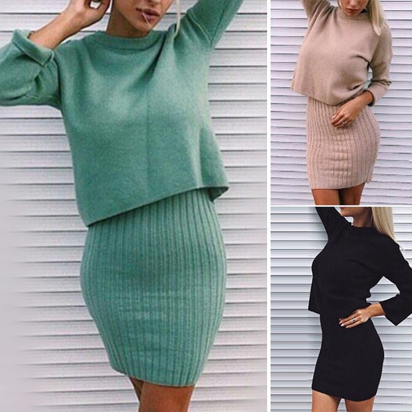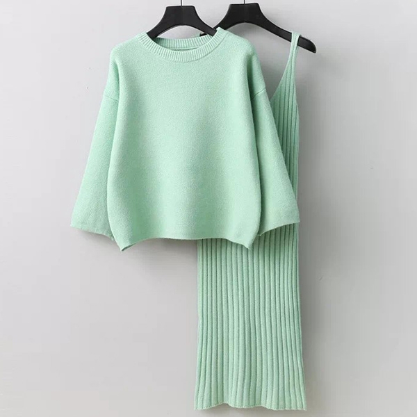 sleeve round neck sweater and a slim fit sling knit dress,this two-piece set can easily make your fashion