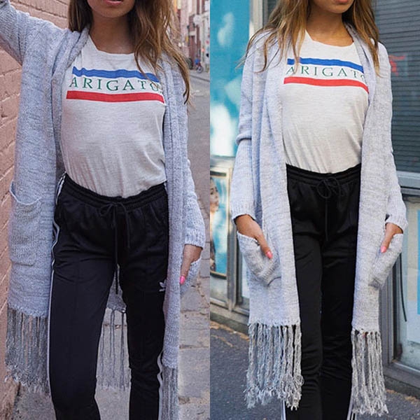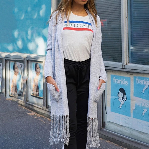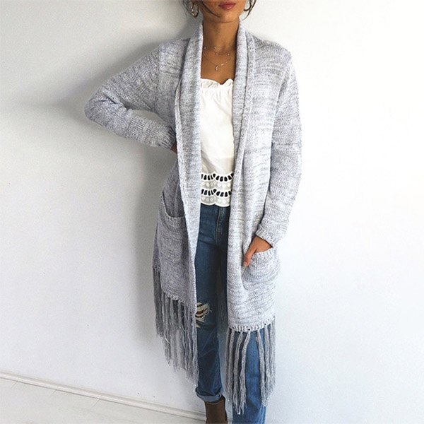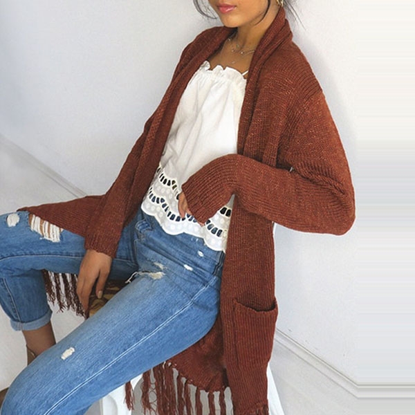 Features a solid color,the most attractive and distinctive design is the tassel hem design. The soft and cozy fabric