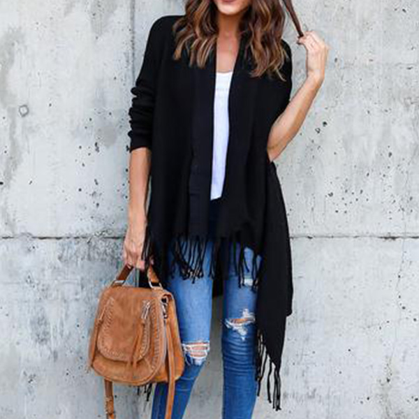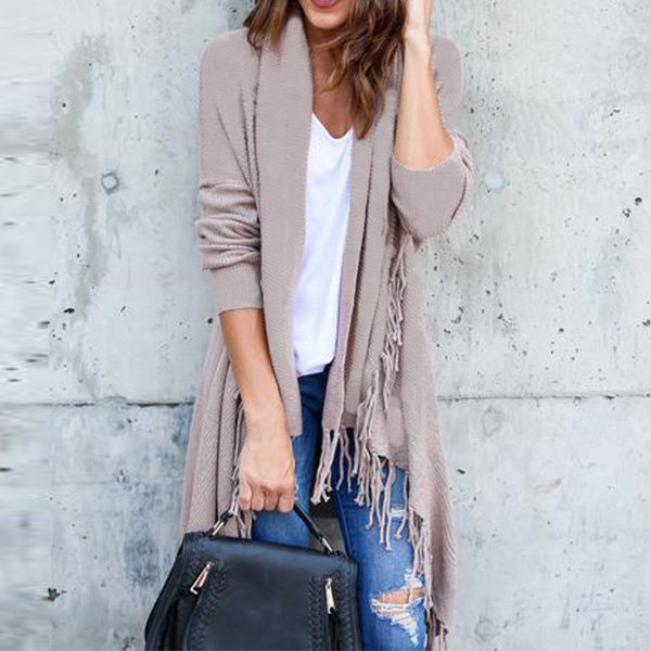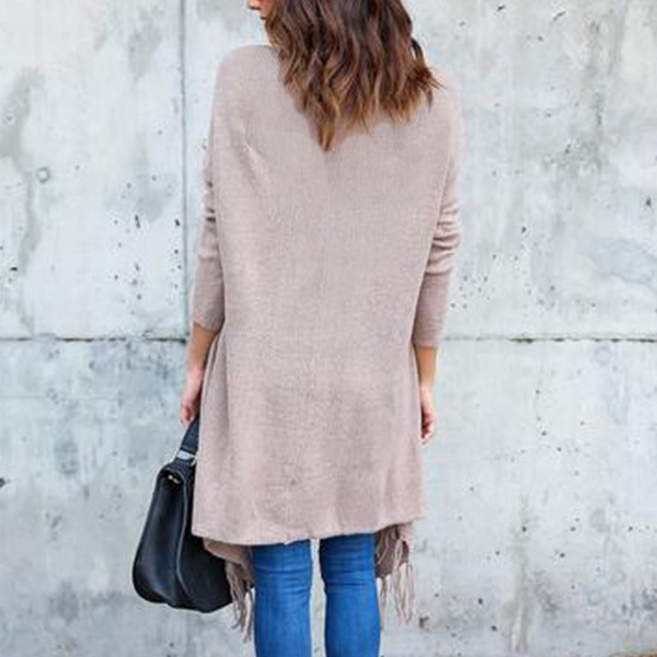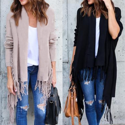 with long sleeve,tassel hem and a loose silhouette,cozy,stylish and distinctive. No matter you pair it with your t-shirts,
