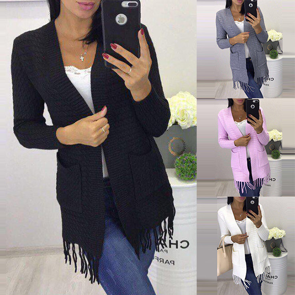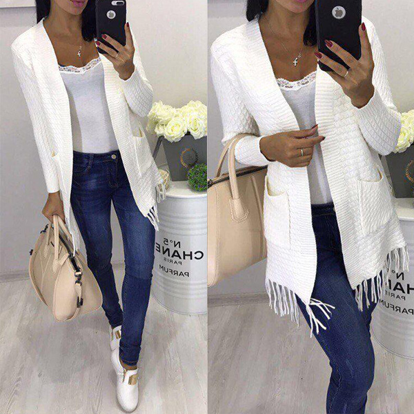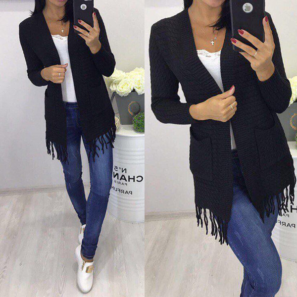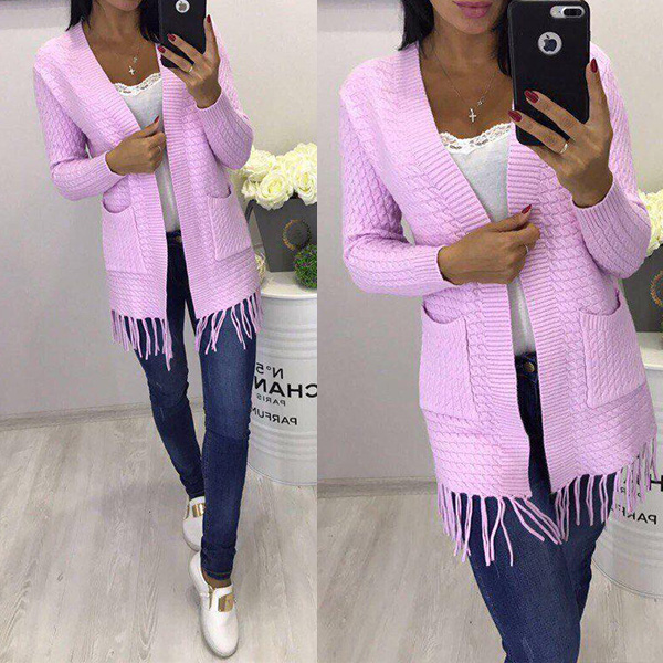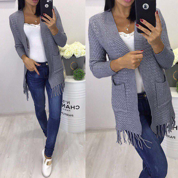 Solid color style,outfitted with long sleeve,tassel hem and a fit silhouette,this knit cardigan not only can