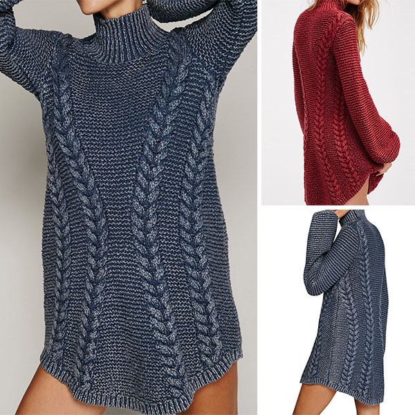 You can keep warm and stylish in this sweater. Solid color style,designed with long sleeve,turtleneck and arc hem,