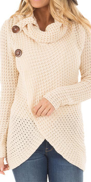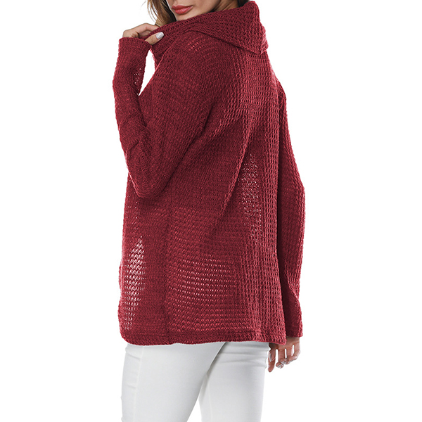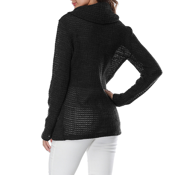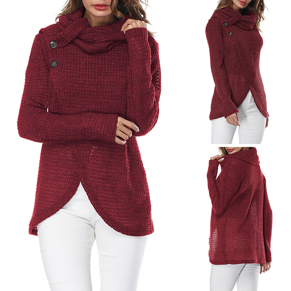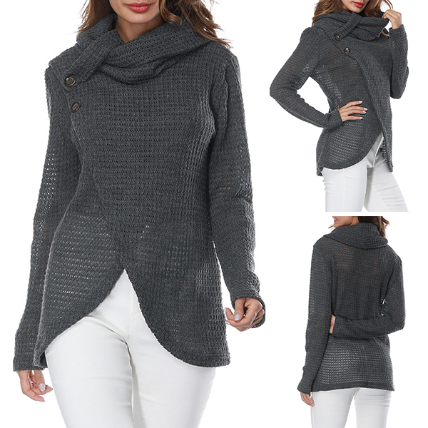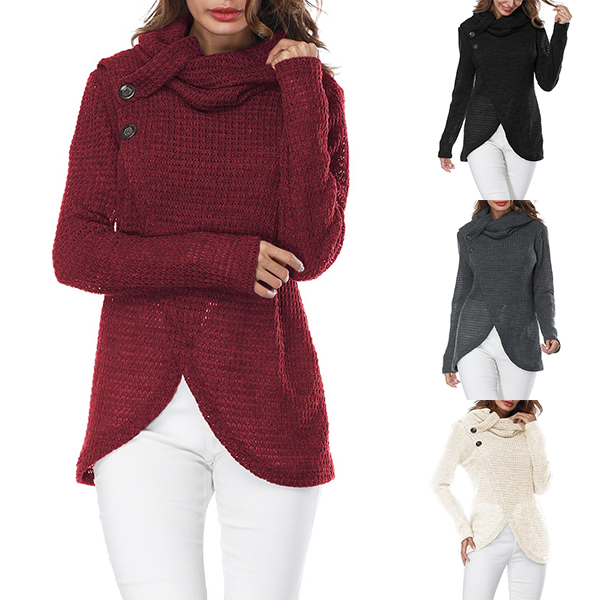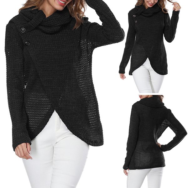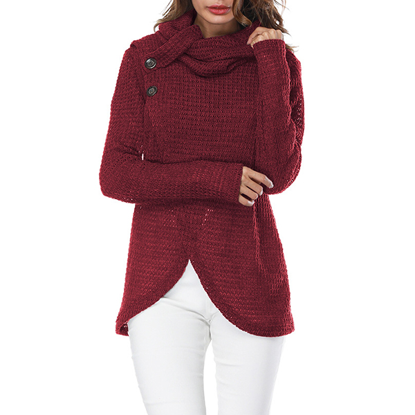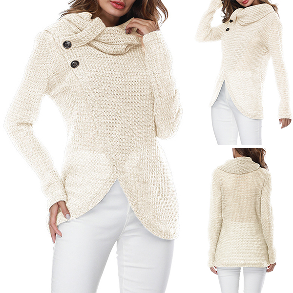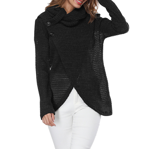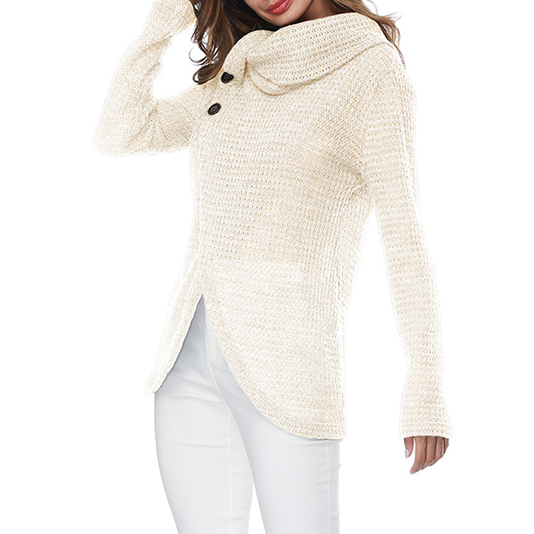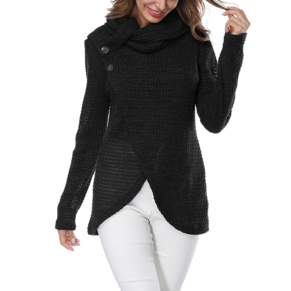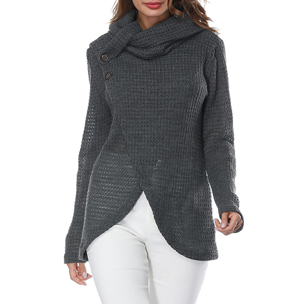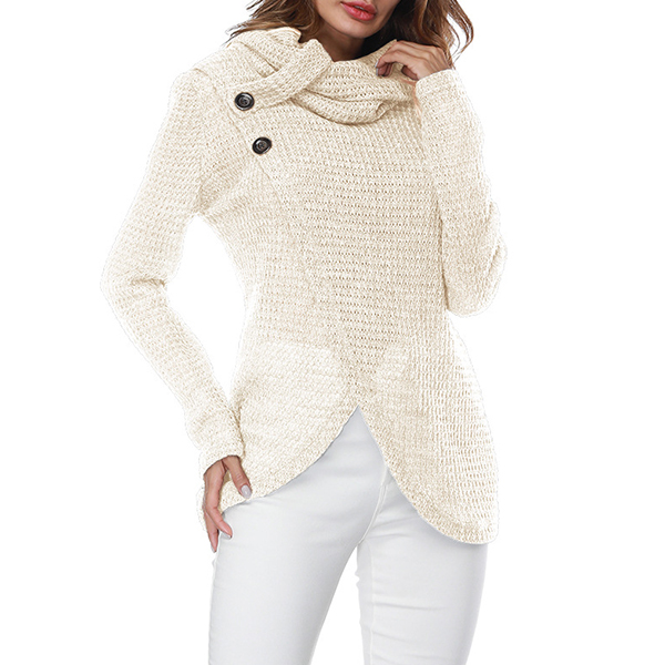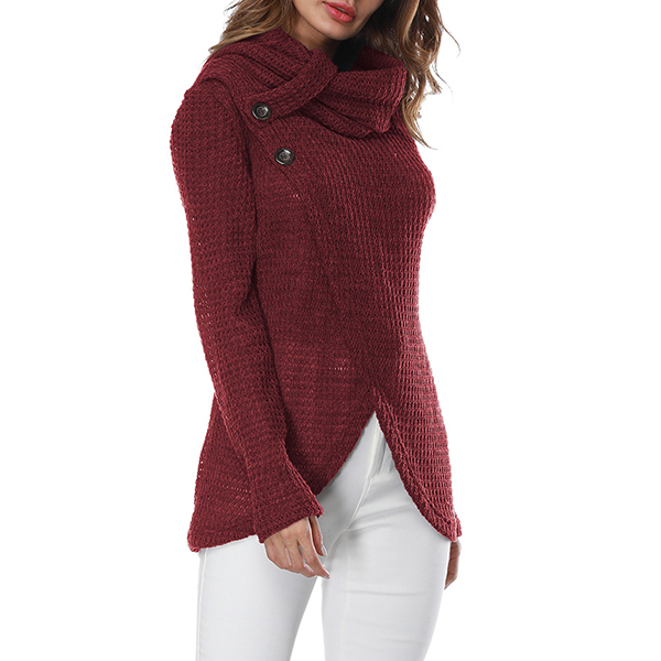 Fashion Solid Color Long Sleeve Turtleneck Irregular Hem Sweater