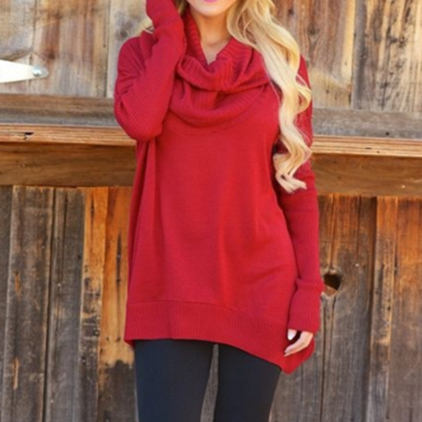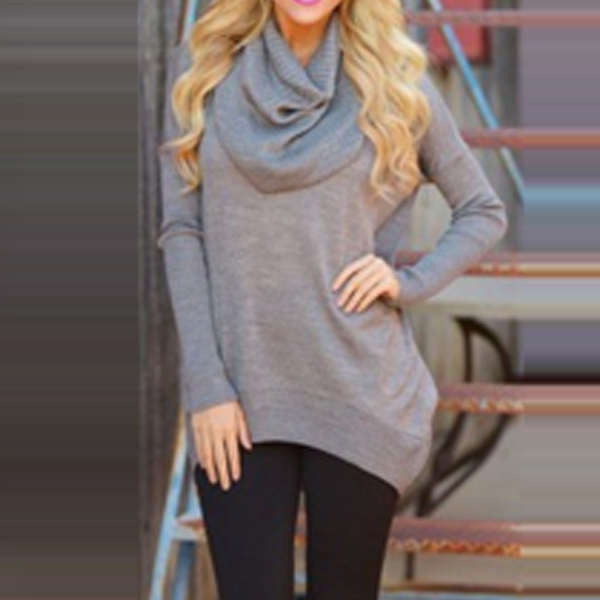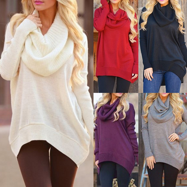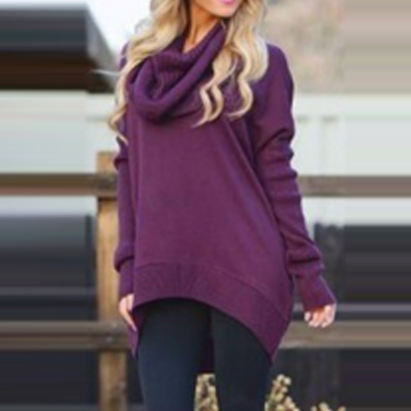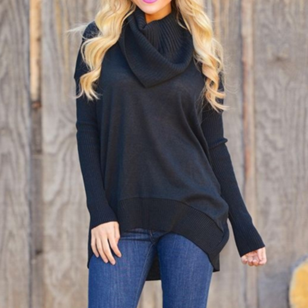 This sweater features a solid color,finished with long sleeve,turtleneck,an irregular hem and a loose silhouette,