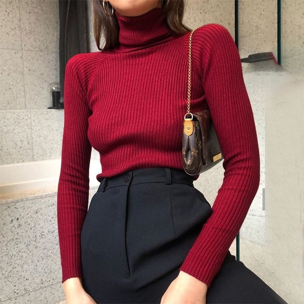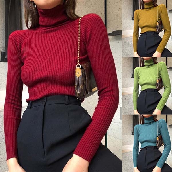 In these cold days,you need such a simple,cozy,stylish and all-match knit top. Solid color style,finished with long sleeve,turtleneck and a fit silhouette design,