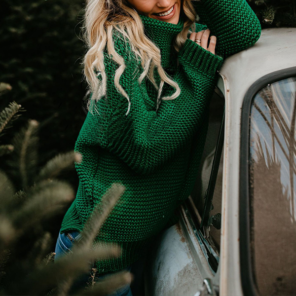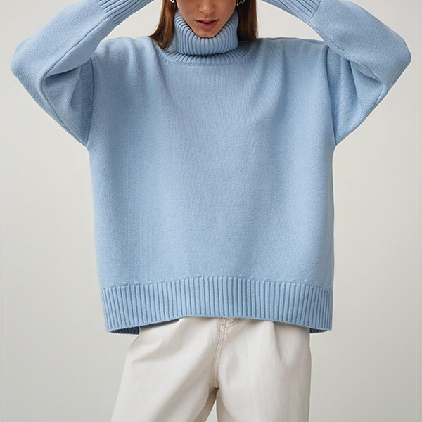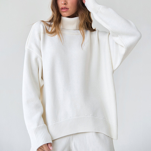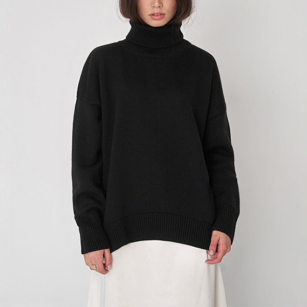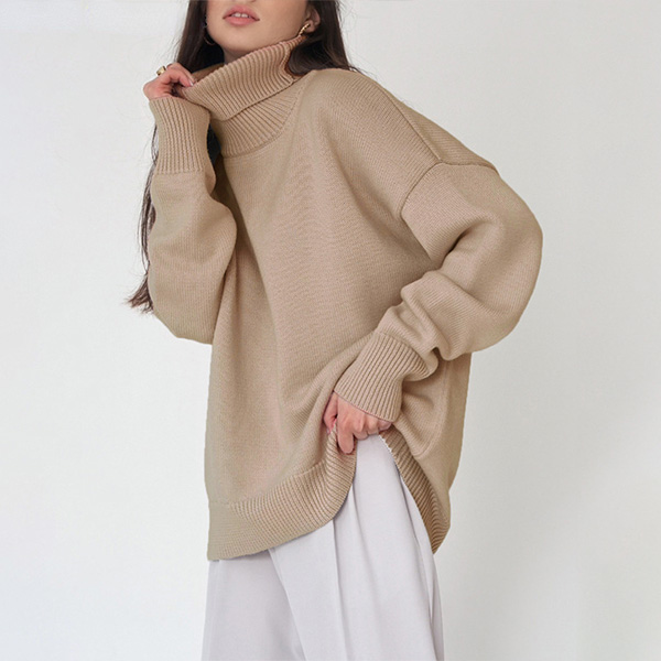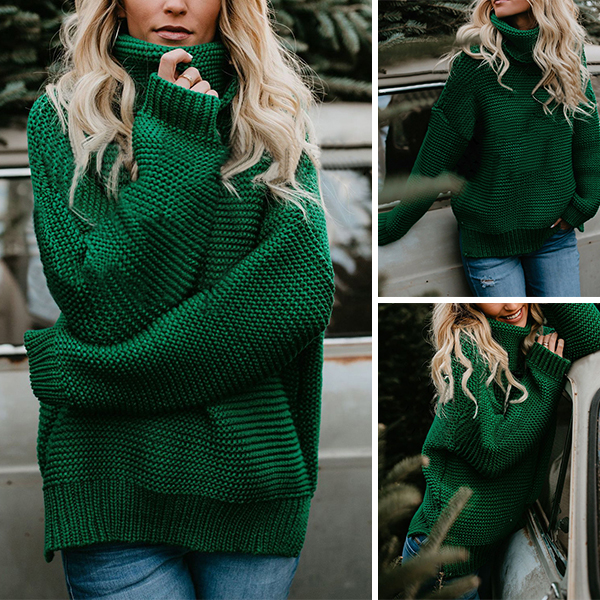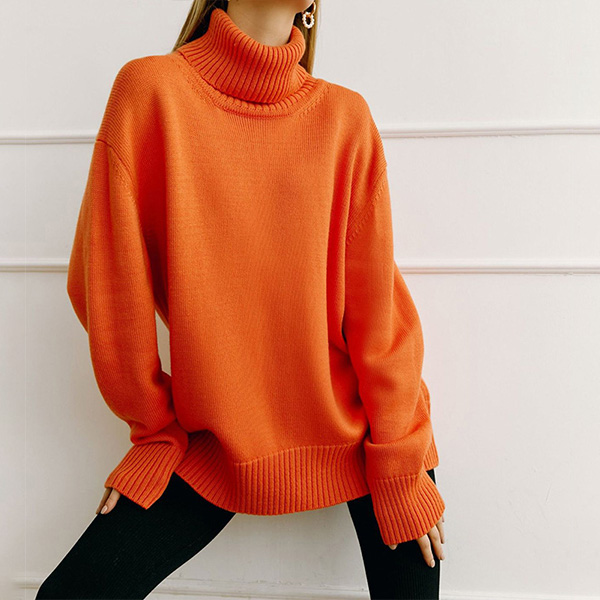 Sweater is a must-have item when the chilly winter comes. So how about this one? It boasts a solid color,finished with long sleeve,turtleneck and a loose silhouette,simple in design but filled with chic,cozy and stylish flavor. It also allows to be matched with different style bottoms. If you feel your overall dress up looks too simple,you can add a sweater necklace to enrich it.