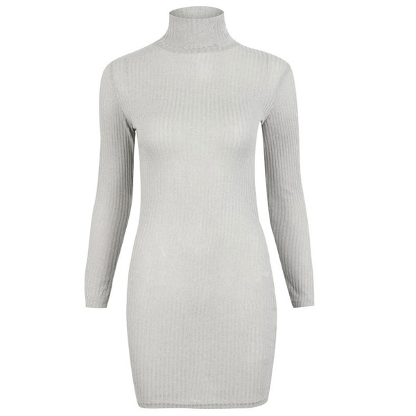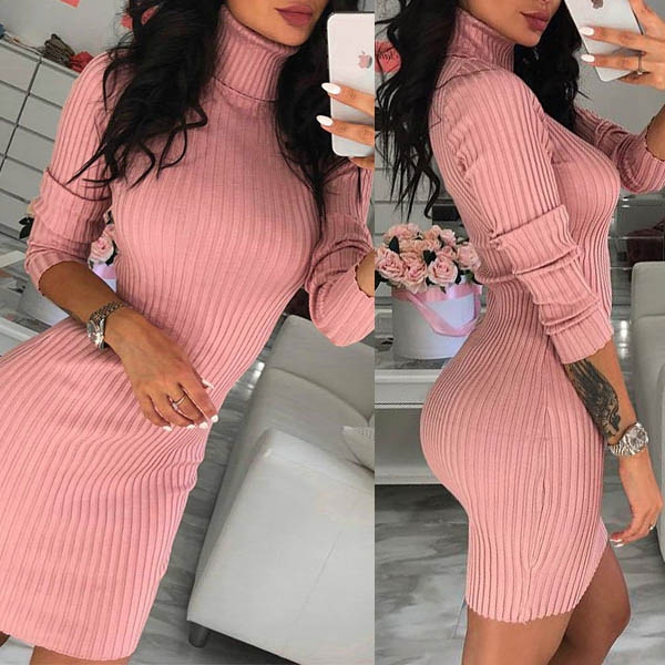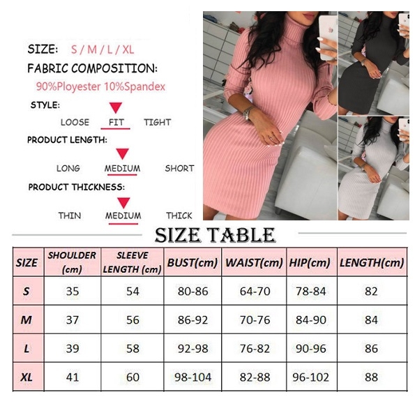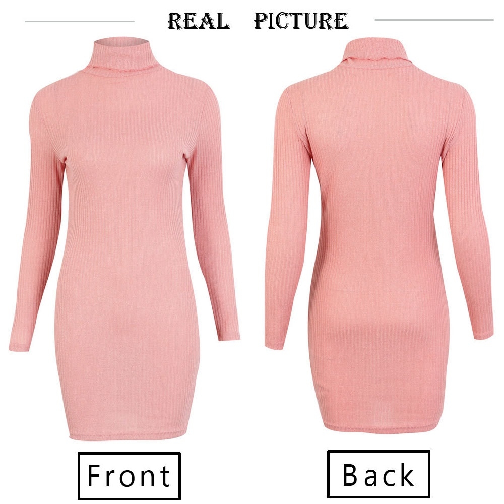 long sleeve,turtleneck and a fit silhouette,this dress is your perfect choice in the spring,autumn and winter.