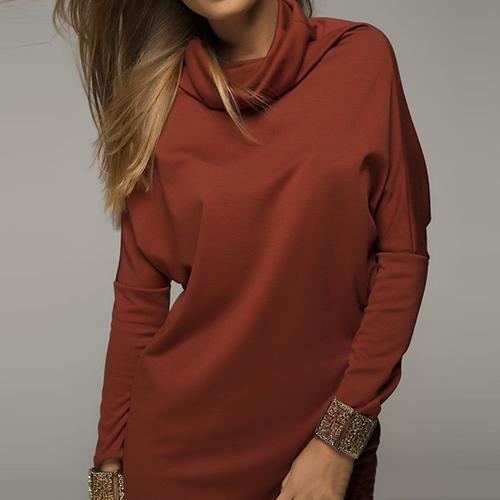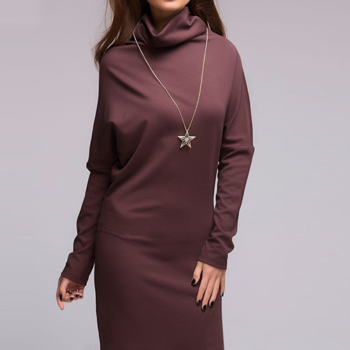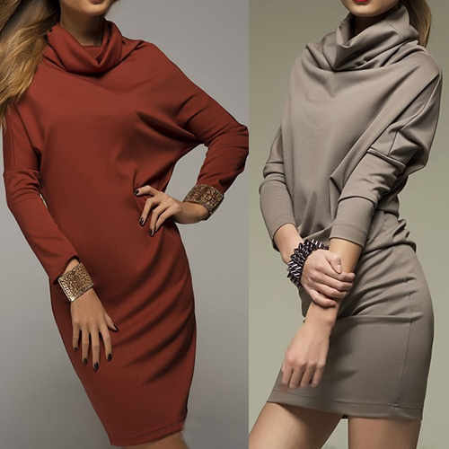 endless styling options. Its sleek knee-length silhouette, long sleeves, and turtleneck designs lend