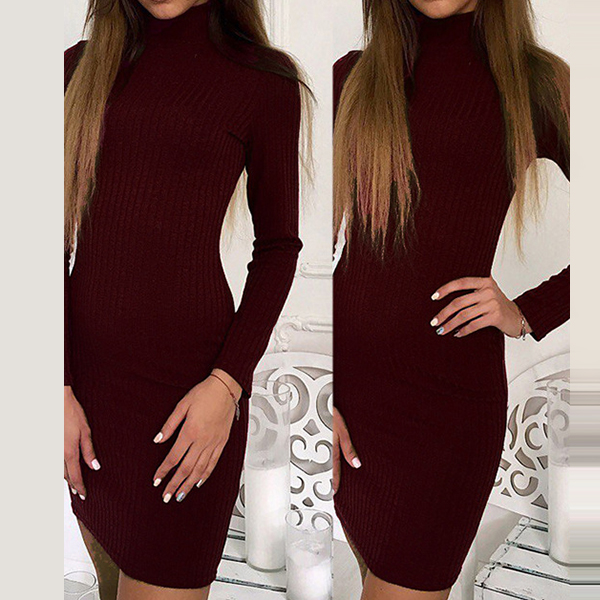For the spring,autumn and winter,this knit dress would be your good choice. Solid color style,designed with long sleeve,