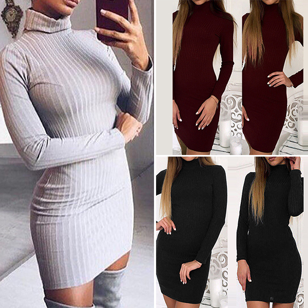 turtleneck and a fit silhouette,this knit dress not only can keep you warm and cozy,but also can sketch out your seductive