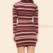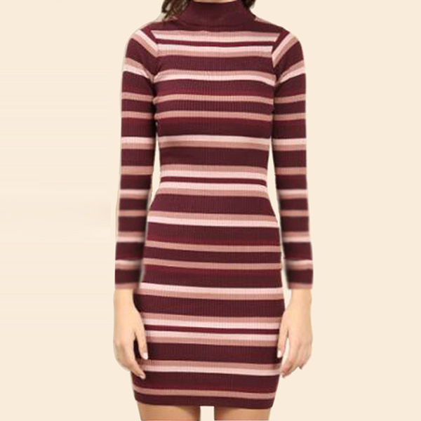 Fashion Solid Color Long Sleeve Turtleneck Slim Fit Striped Sweater Dress