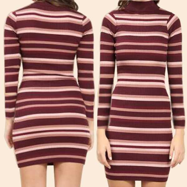 Invite this sweater dress to your wardrobe when the chilly season comes! Striped style,accompanied with long sleeve,