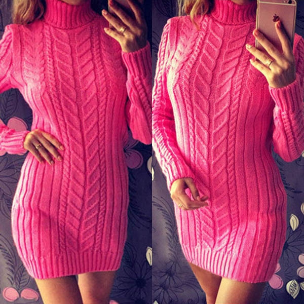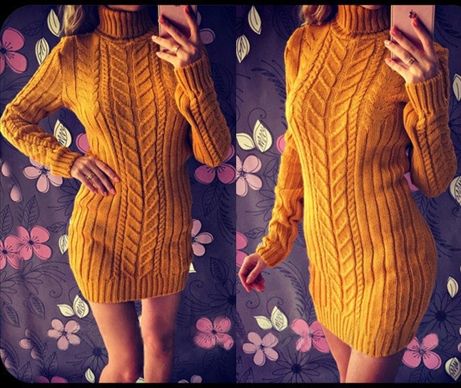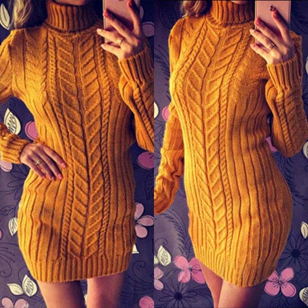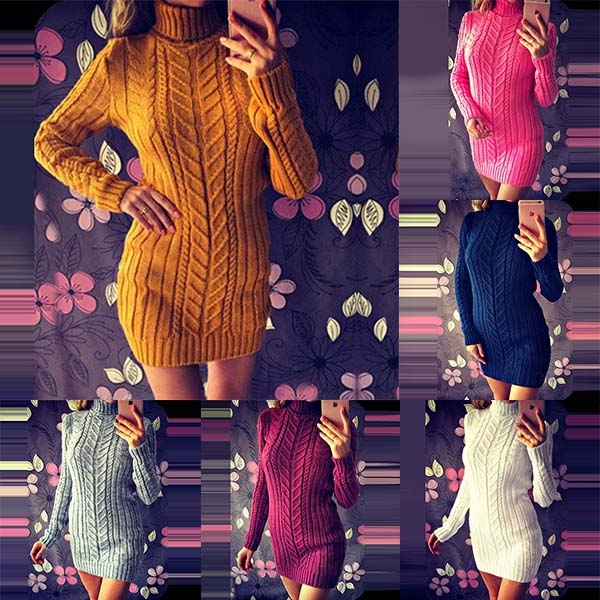 turtleneck and a fit silhouette design,this sweater dress can keep you warm as well as showcase