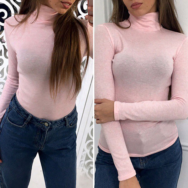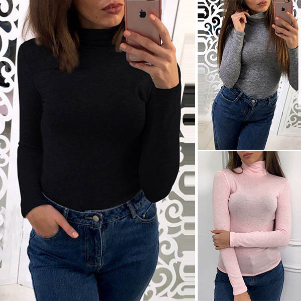 finished with long sleeve,turtleneck and a tight silhouette,this t-shirt is your perfect choice when the days