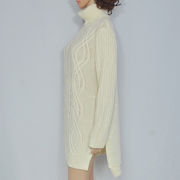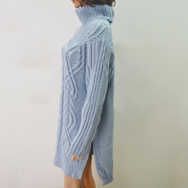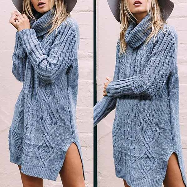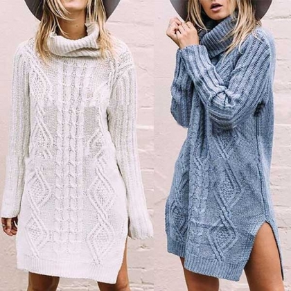 with a solid color,finished with long sleeve,turtleneck and a slit hem,this dress can keep you warm as well