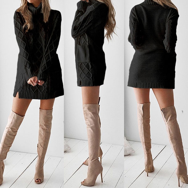 turtleneck and a clean silhouette,this sweater dress can offer you a charming look by teaming with your