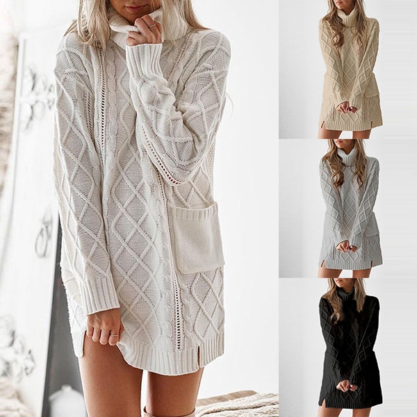 Greet the cold days with this cozy yet stylish sweater dress. It comes with a solid color,finished with long sleeve,