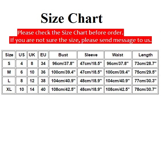S : Bust : 96cm(37.8"); Waist : 96cm(37.8"); Length : 73cm(28.74");