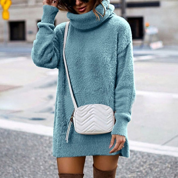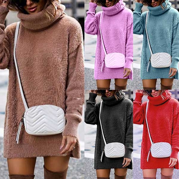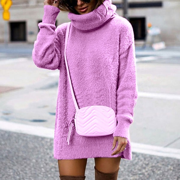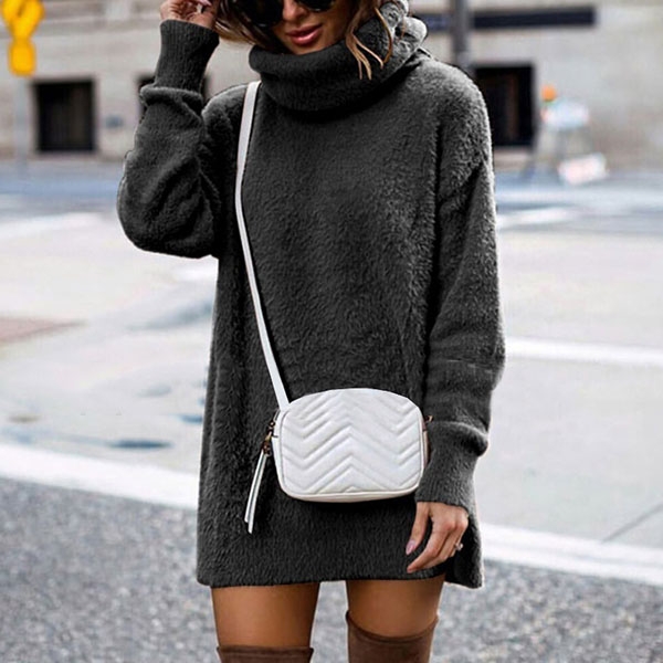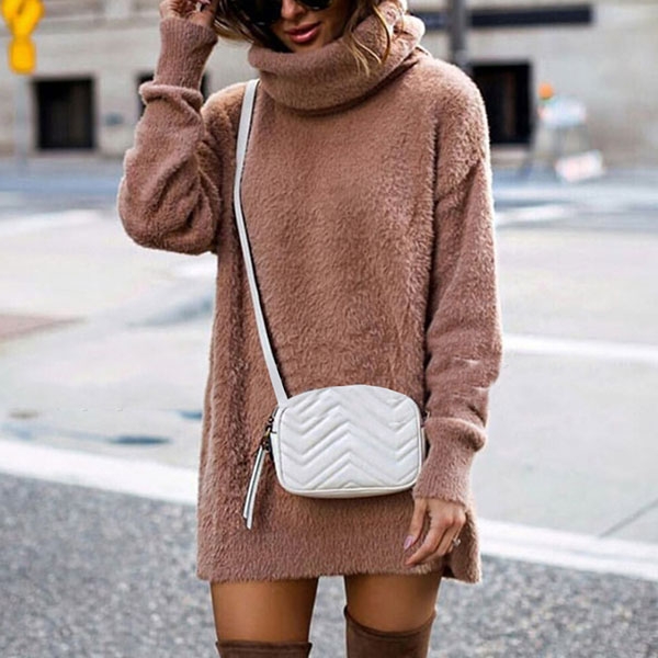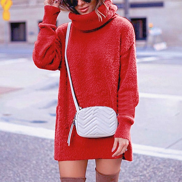 In these cold days,this sweater dress would be your wise choice. It comes with a solid color,finished with