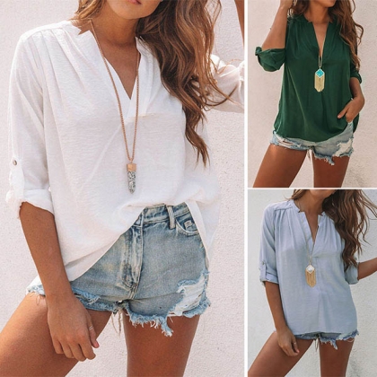 v-neck and back-slit hem design,chic,stylish and unique. Meanwhile,its soft and breathable fabric