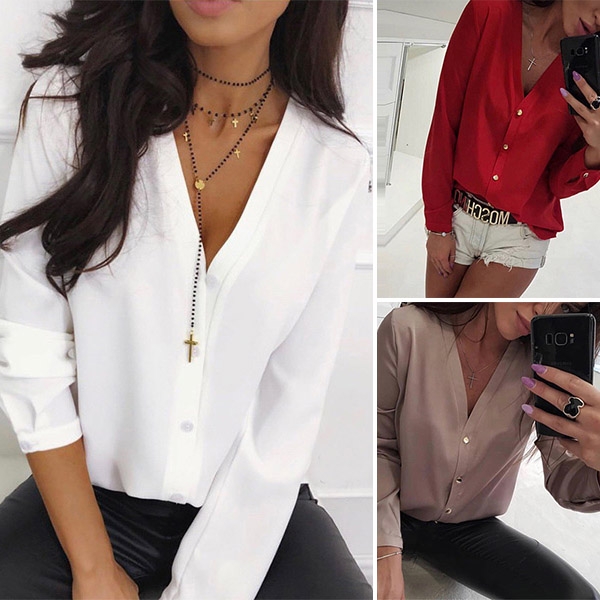 with long sleeve,v-neck and a clean silhouette design,this piece can offer you different fashion