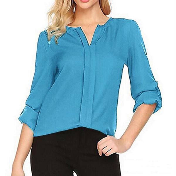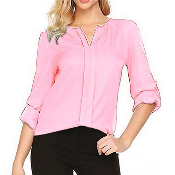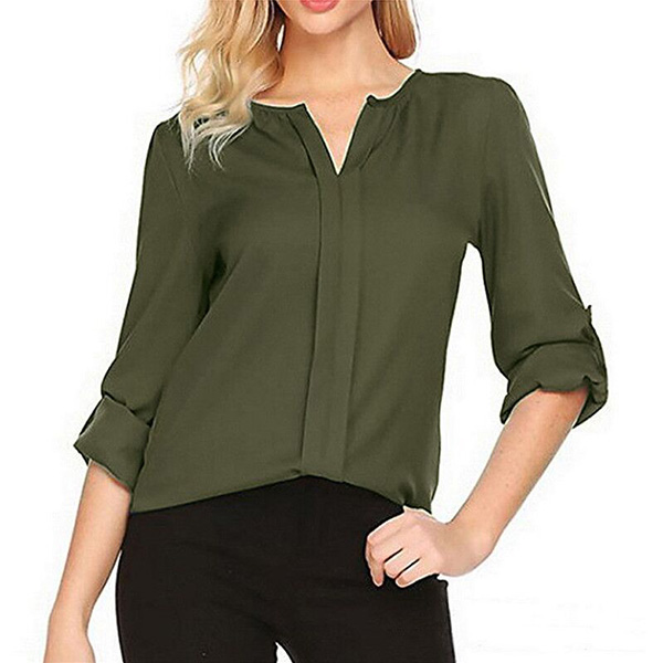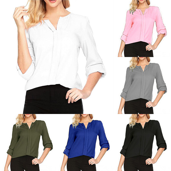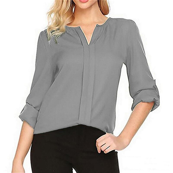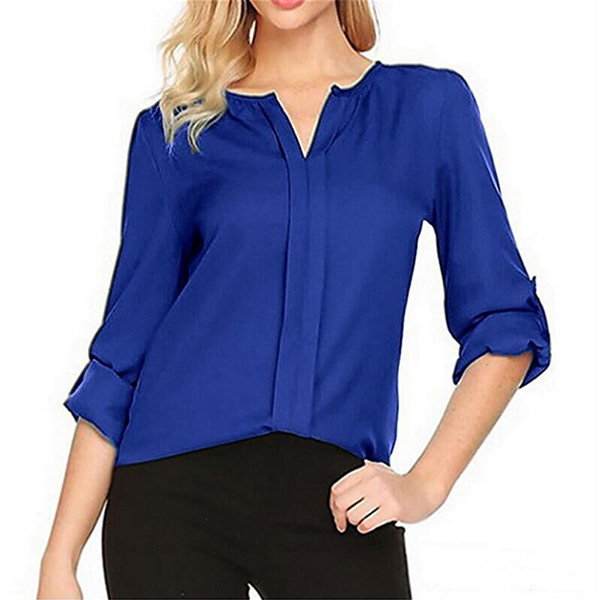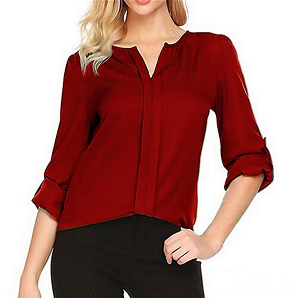 This chiffon blouse comes with a solid color,finished with long sleeve and v-neck design,simple in design