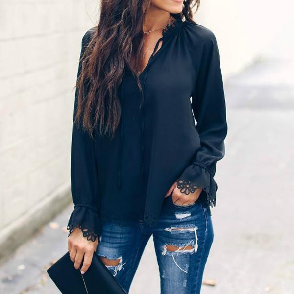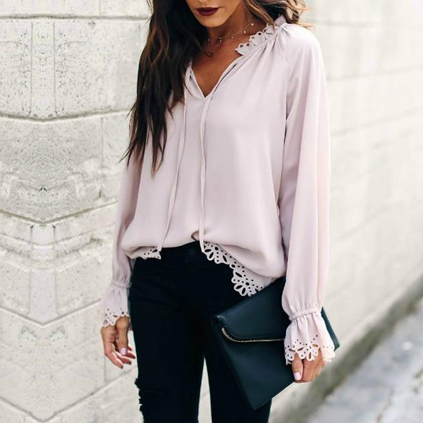 Give you style an instant boost by slipping into this chiffon blouse. Boasting a solid color,the soft,