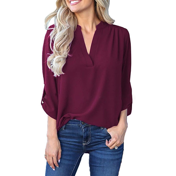 Thanks to the soft and breezy chiffon fabric,you can have a long-lasting comfort in this chiffon blouse.