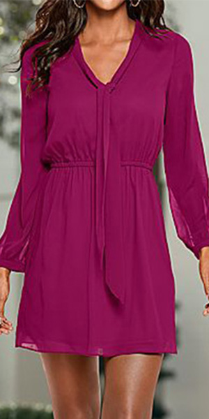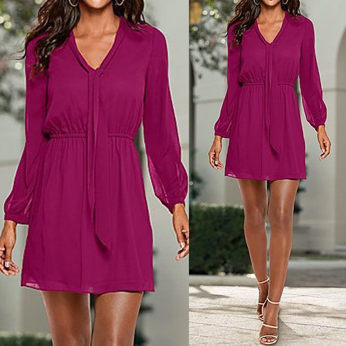 Style and cozy come together so perfectly in this chiffon dress! Solid color style,with long sleeve,v-neck