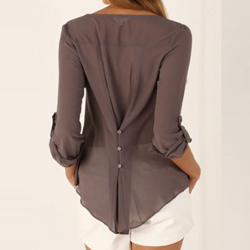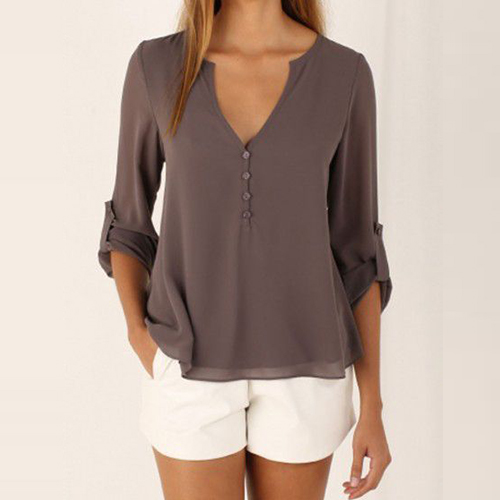 Hey,girls,how could you miss this stylish and all-match chiffon shirt? Solid color style,with long sleeve,