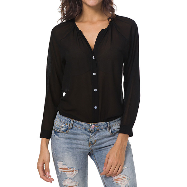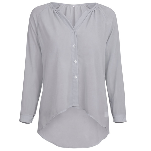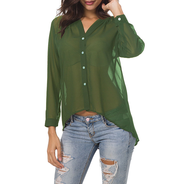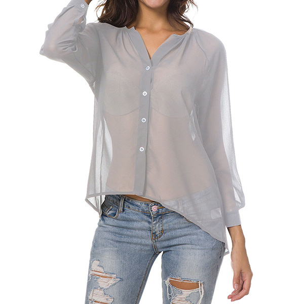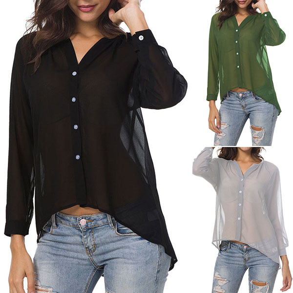 See-through style design makes it look a little sexy. Finished with long sleeve,v-neck and a high-low hem,