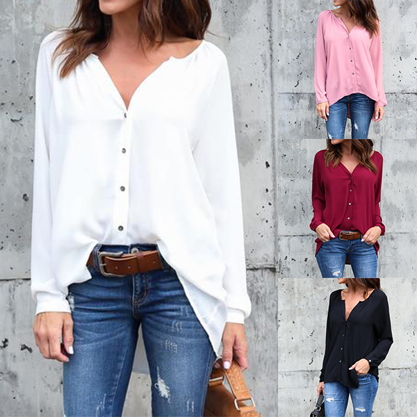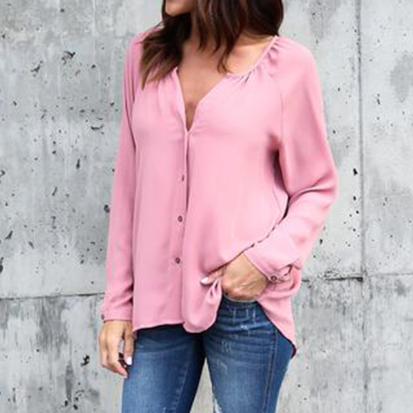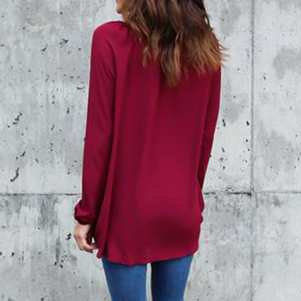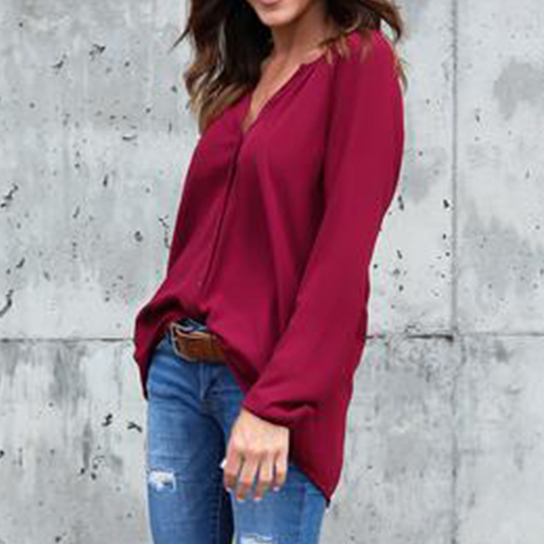 If you're yearning for an instant fashion style,then slip into this chiffon blouse! Solid color style,designed with long