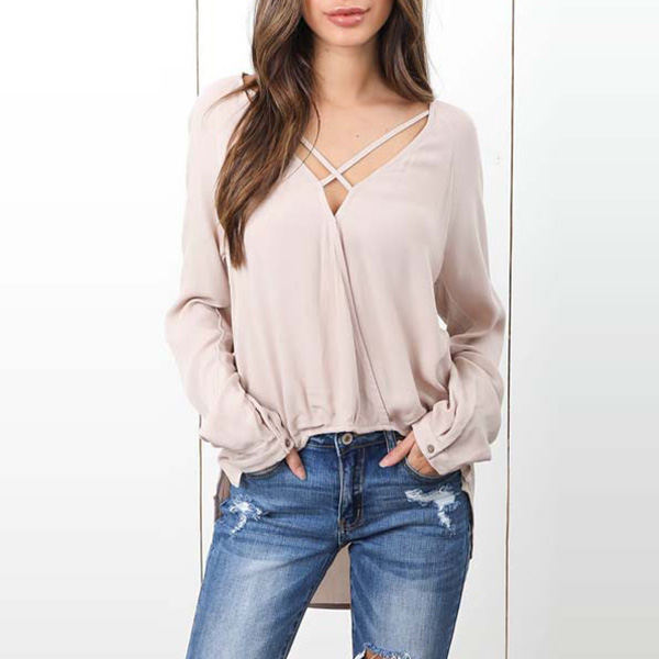 Its soft and breezy chiffon fabric can promise you an utmost comfort,while the long sleeve,v-neck and